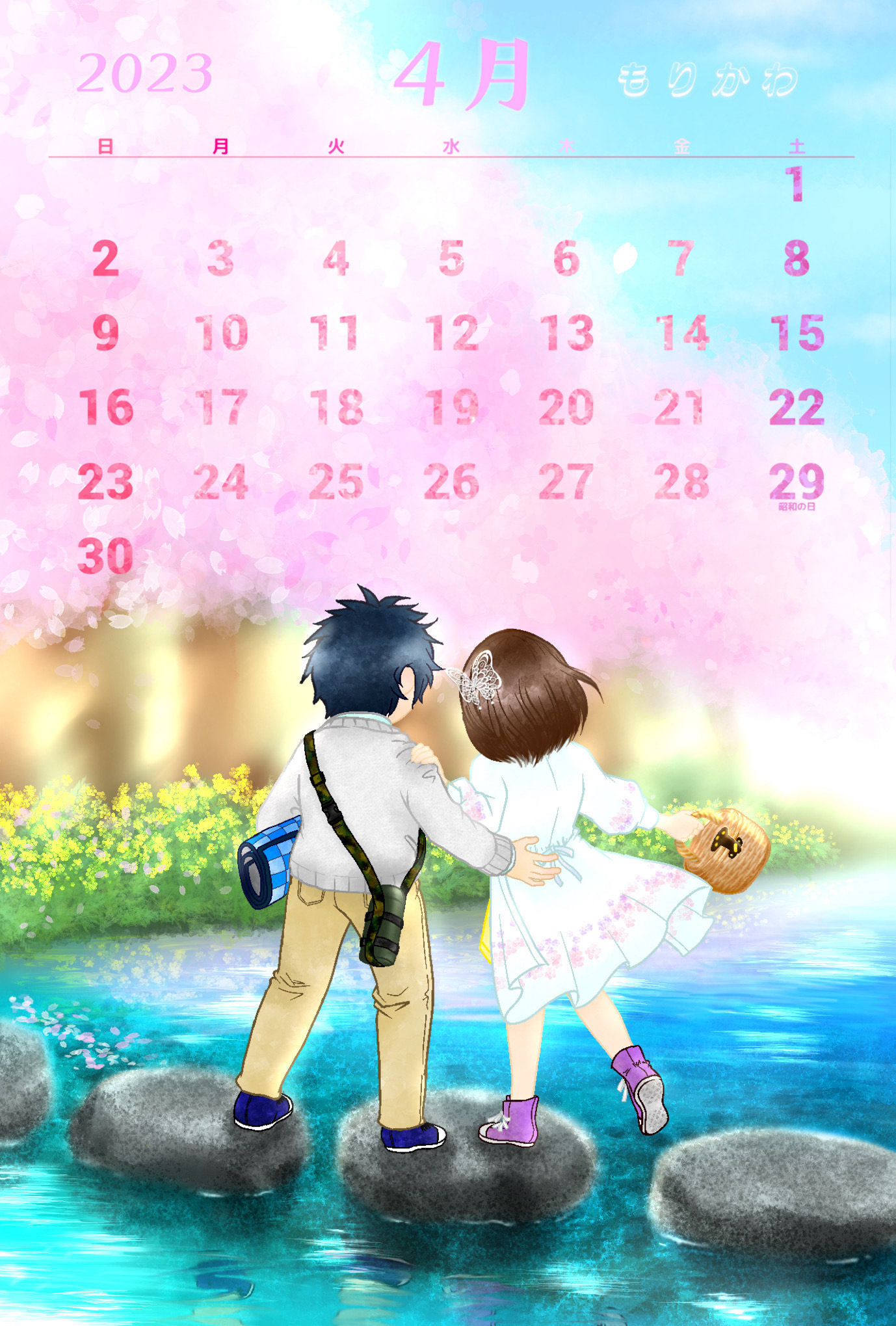 4月はやっぱり桜ですねぇ。カレンダーはお花見に行くシーンですが、春は花の季節でもあるので、これからピクニックなどの行楽でも一面に咲く花をひたすら見て回るという楽しいデートができます。