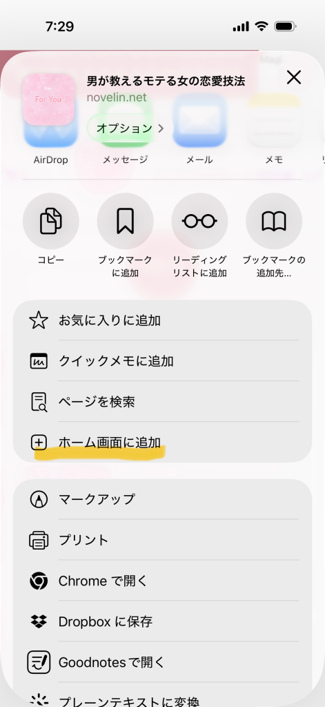 3. 「ホーム画面に追加」を選んでください。